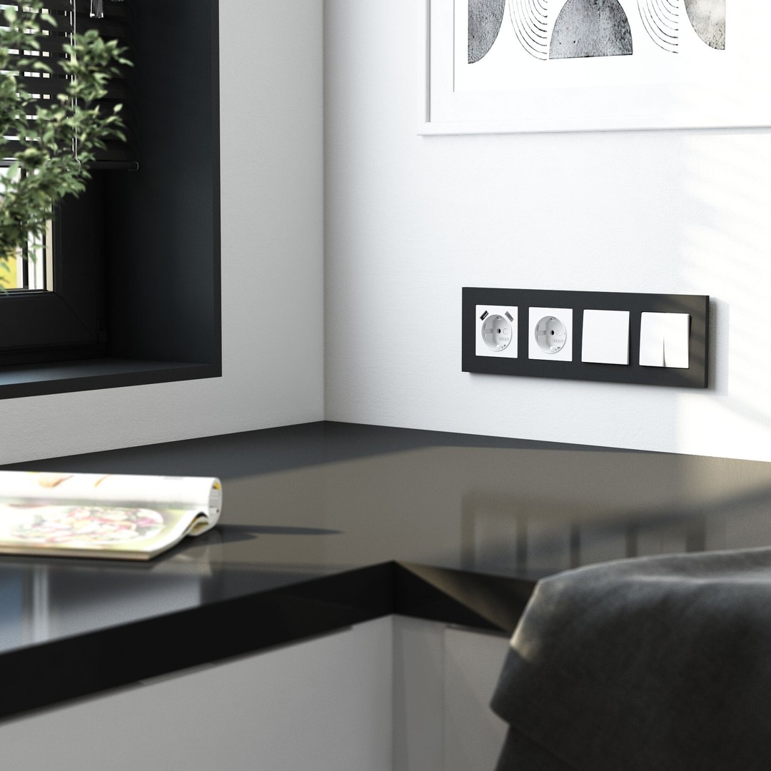 Рамка на 4 поста Slab (черный матовый)
