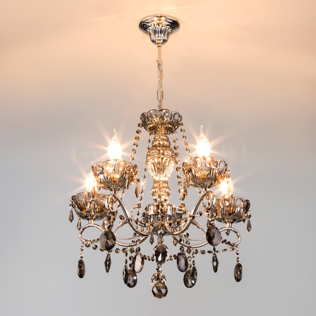 Люстра 10103/5 хром/дымчатый хрусталь Strotskis