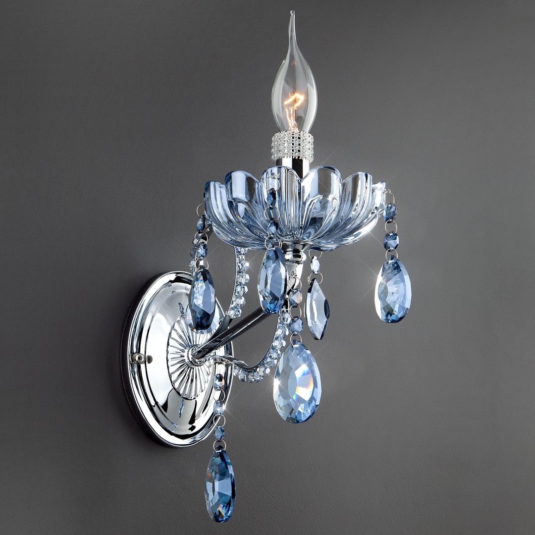 Настенный светильник 3015/1 хром/лазурный хрусталь Strotskis