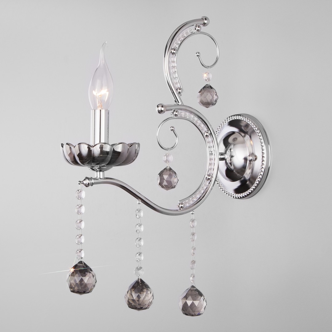 Настенный светильник 10107/1 хром/дымчатый хрусталь Strotskis