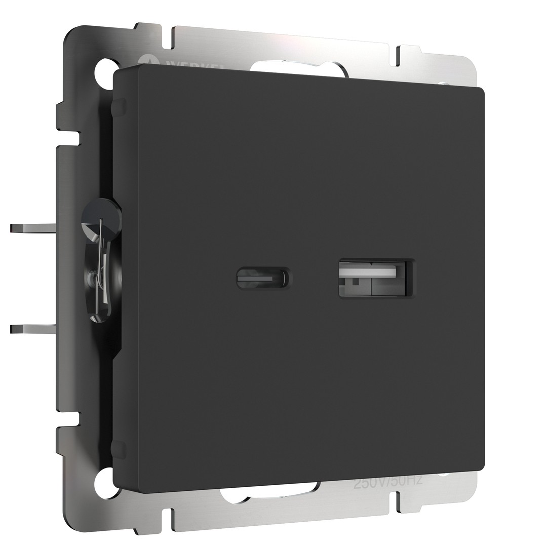 Розетка USB тип A+С (черный матовый) (W1171808)
