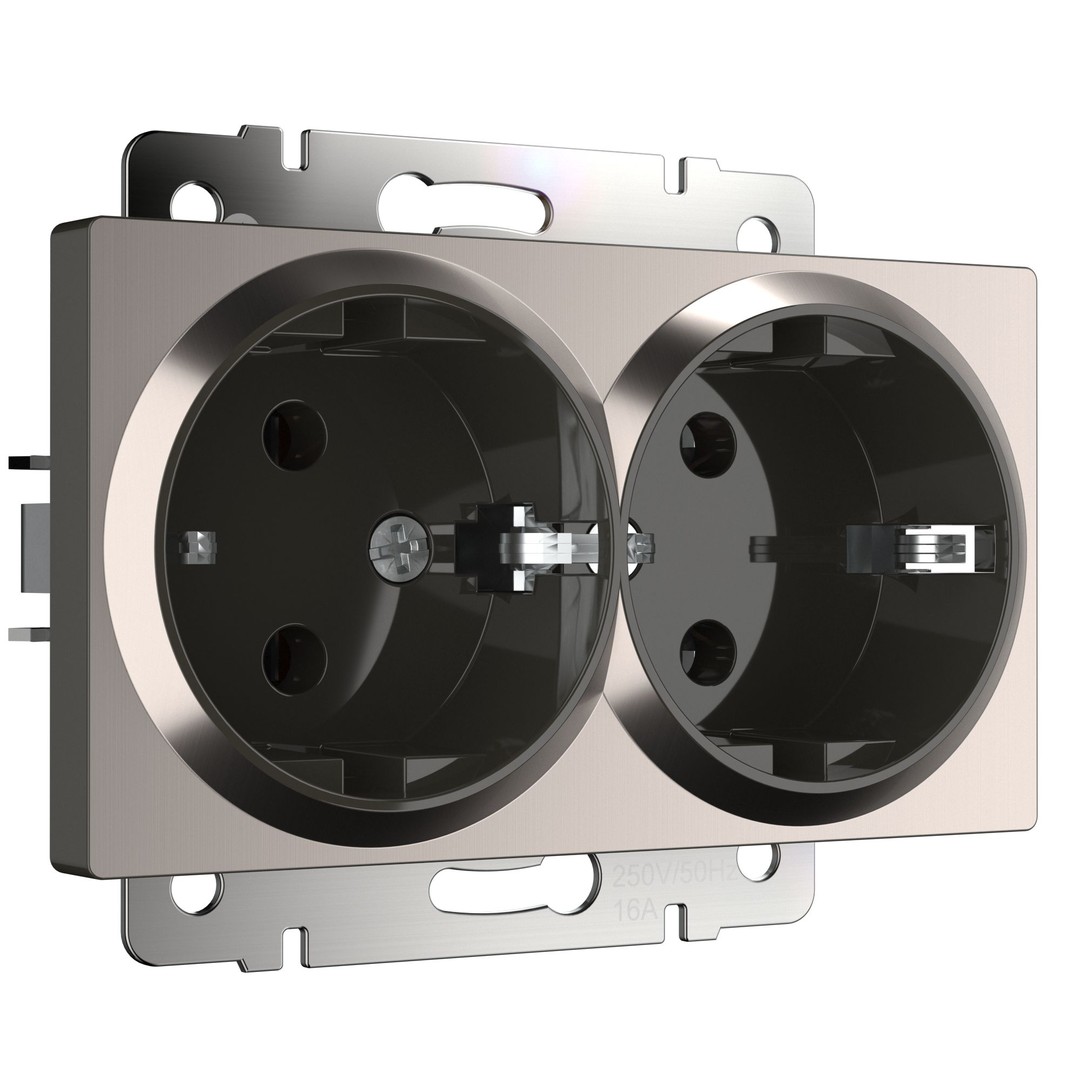 Розетка двойная с заземлением (глянцевый никель) (W1172002)