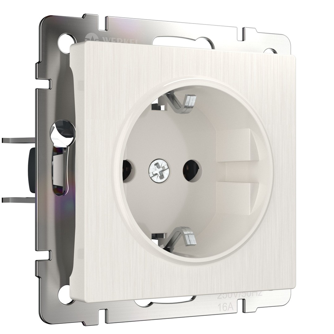 Розетка с заземлением и шторками (перламутровый рифленый) (W1171113)