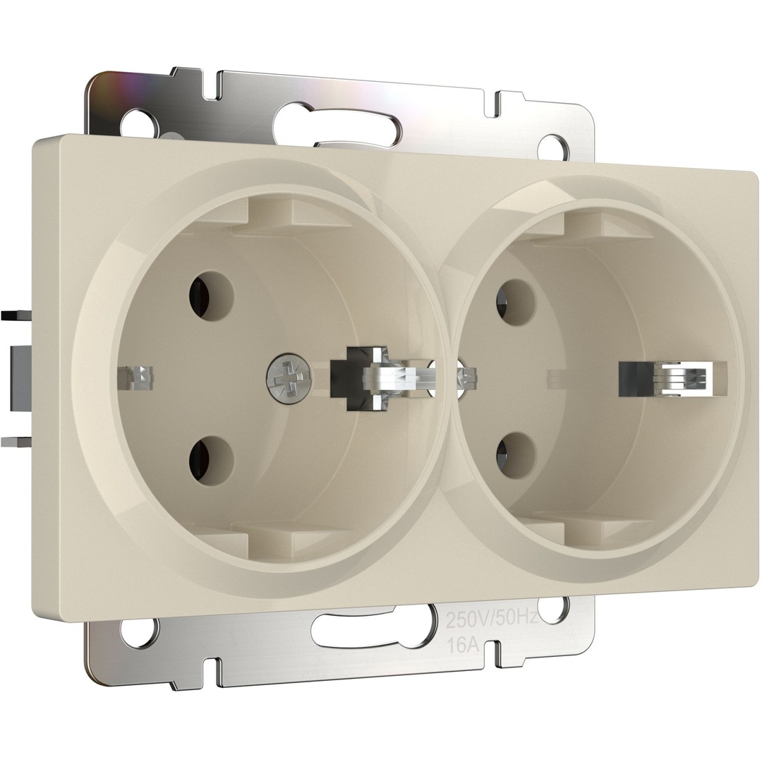 Розетка двойная с заземлением (слоновая кость) (W1172003)