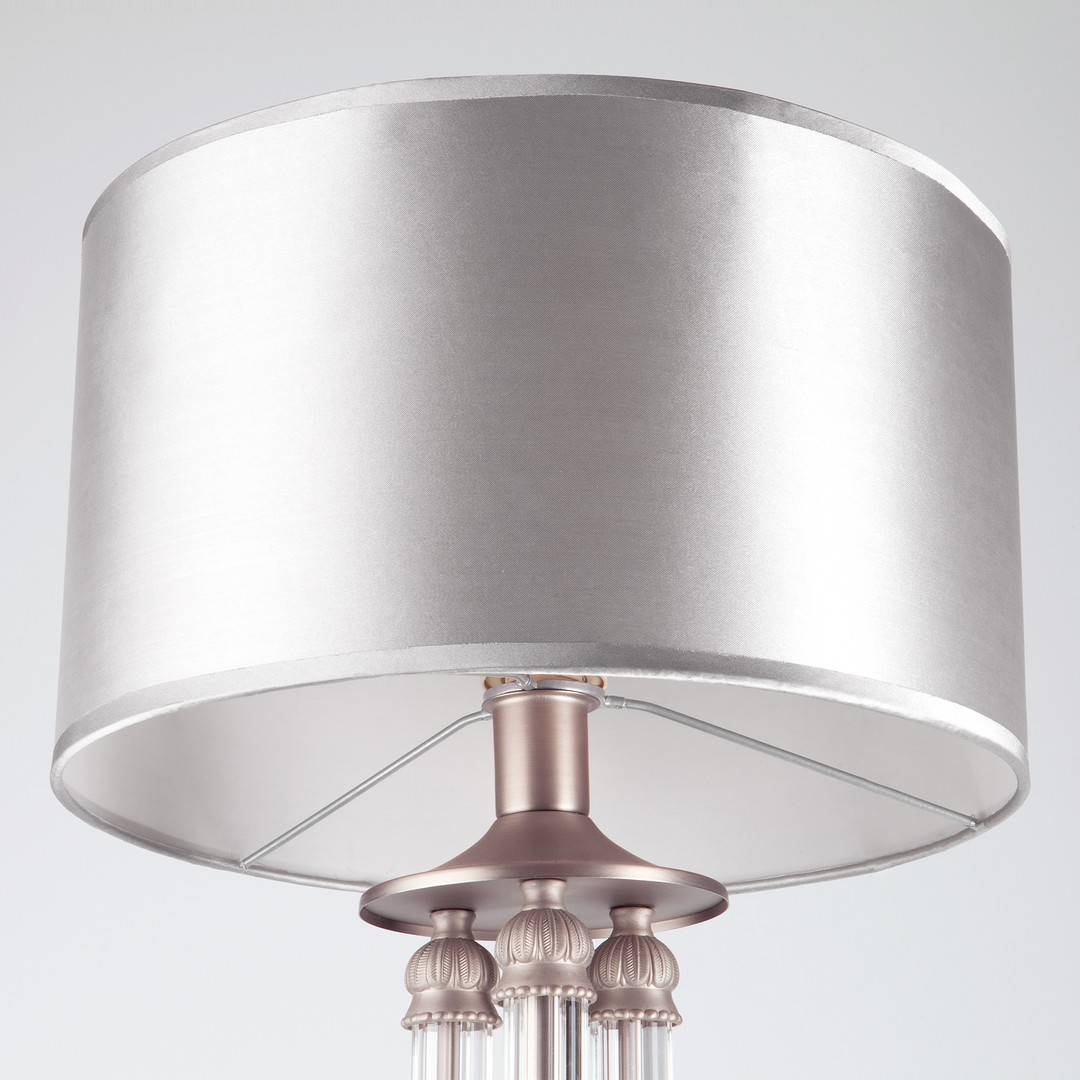 Строгий лаконичный дизайн серии «Adagio» позволит использовать ее в интерьерах с различным стилевым исполнением. Атласные абажуры серебряного цвета создают безупречный тандем с основанием цвета сатин-никель, украшенным декоративными элементами из хрусталя.