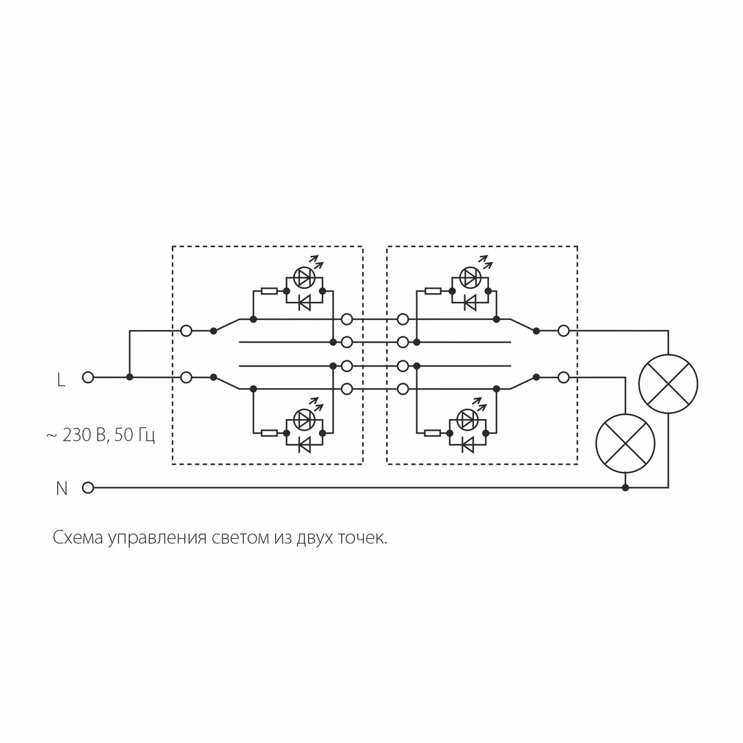 выключатель двухклавишный проходной с подсветкой