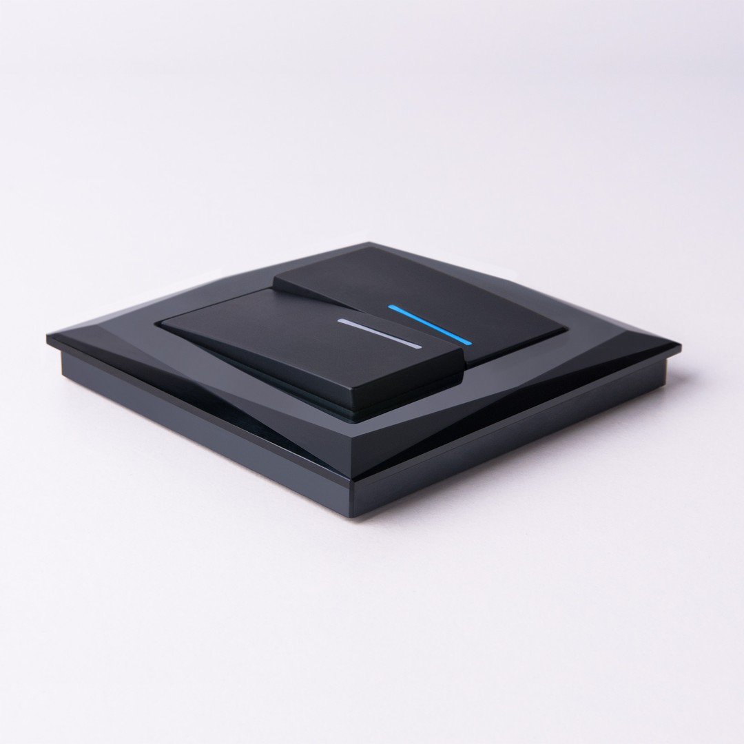Выключатель двухклавишный проходной с подсветкой (черный матовый) (W1122108)